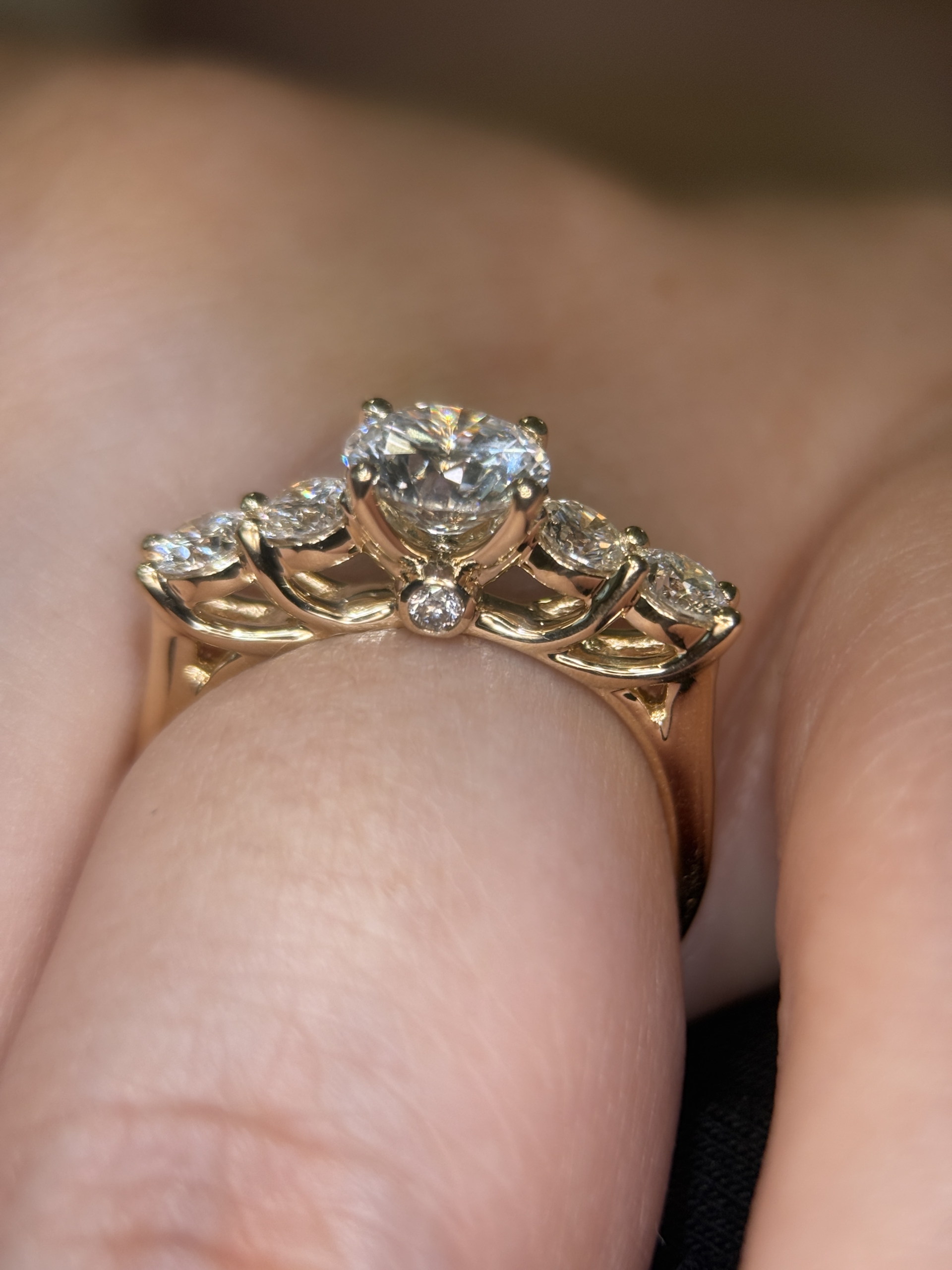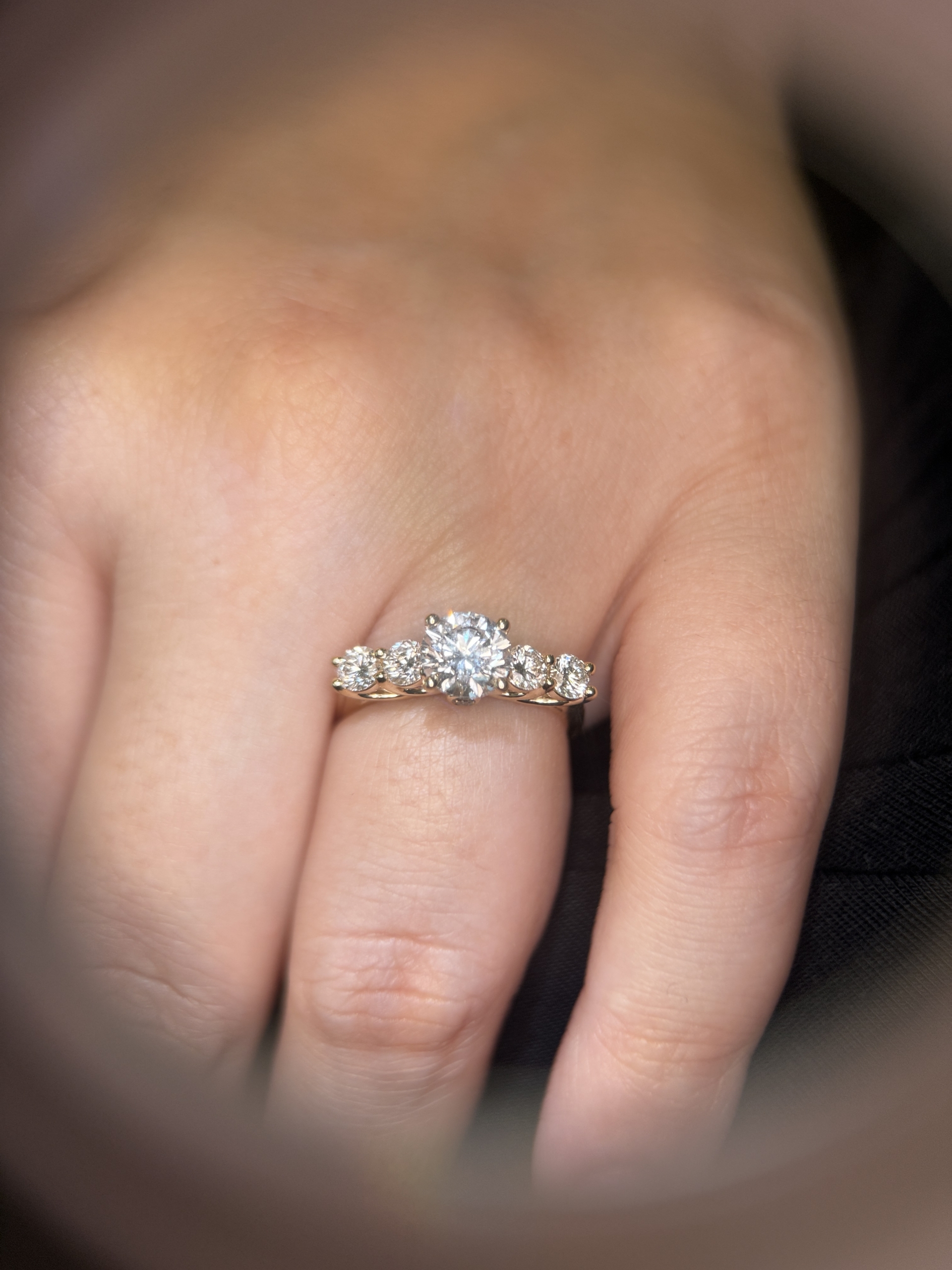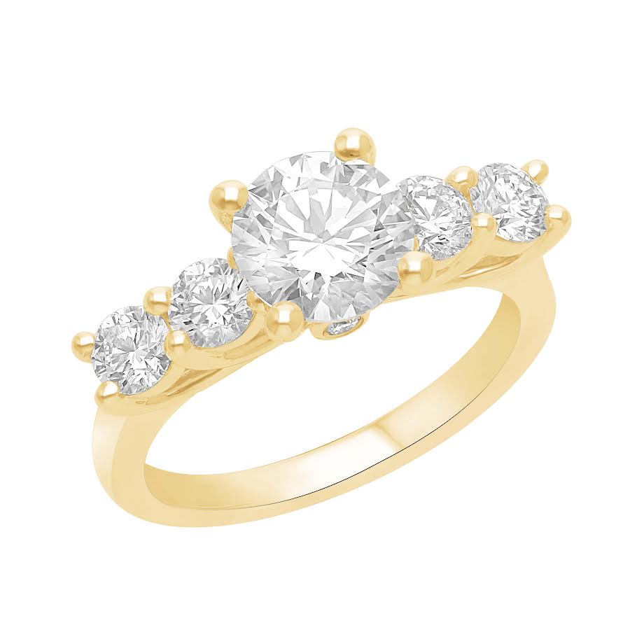 Alberte – En forlovelsesring med stor centersten og fire flankerende diamanter