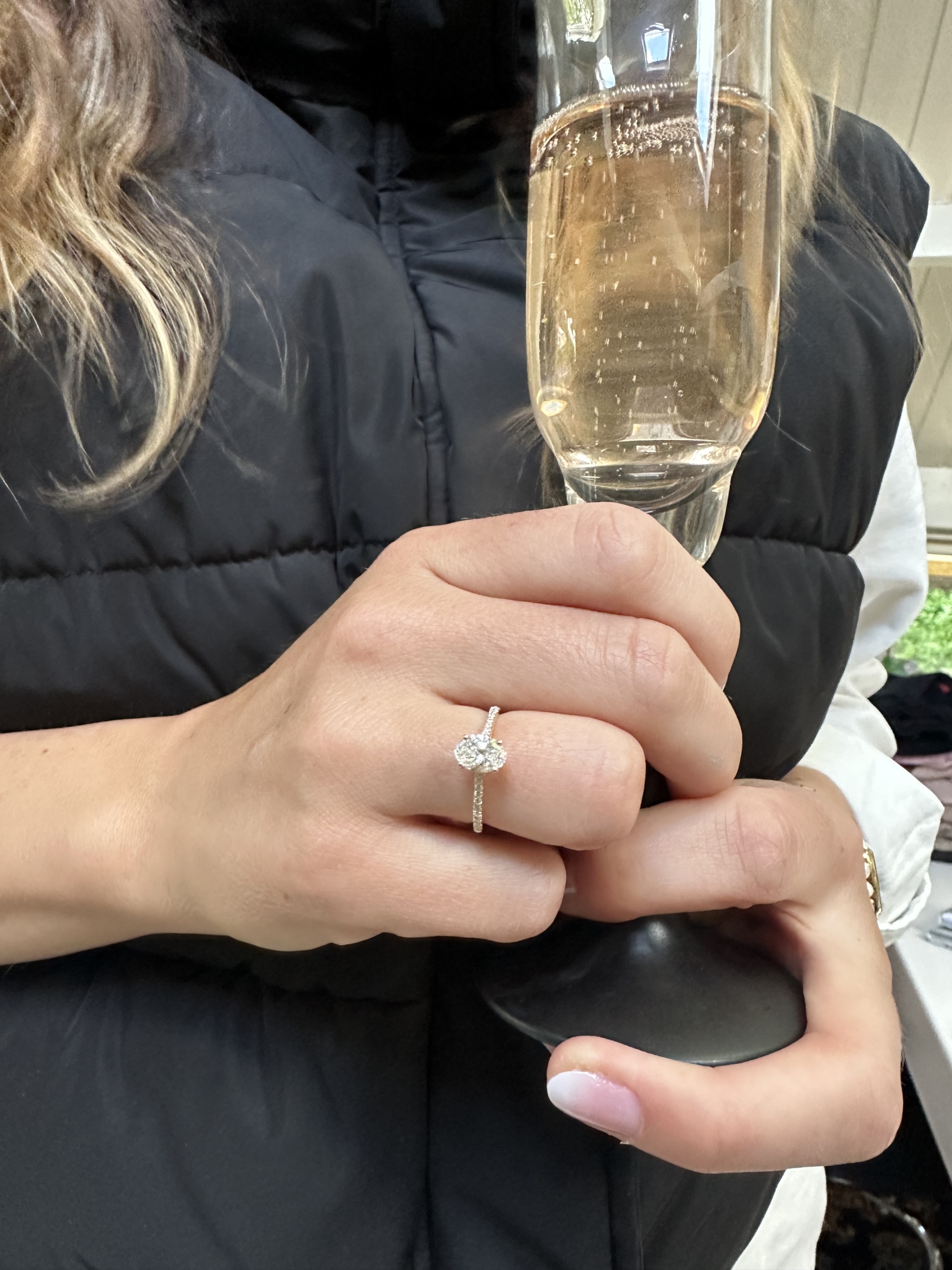 Fortryl med tidløs elegance og moderne luksus med denne smukke diamantring. I midten sidder en fantastisk 1.0 ct ovalformet diamant, perfekt fattet med 4 grapper, som sikrer optimal lysindfald og fremhæver diamantens strålende skønhed.