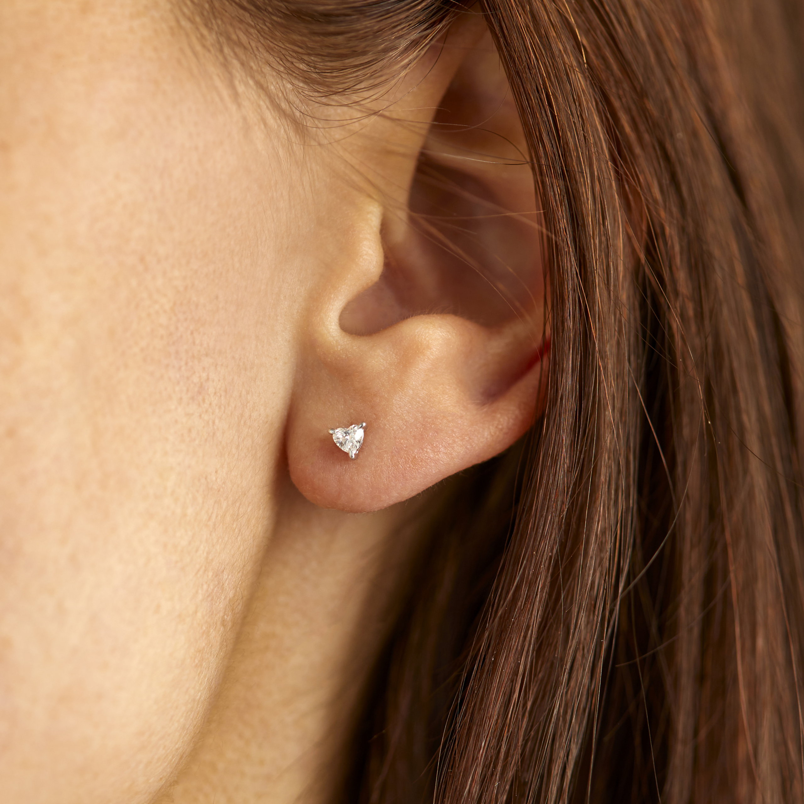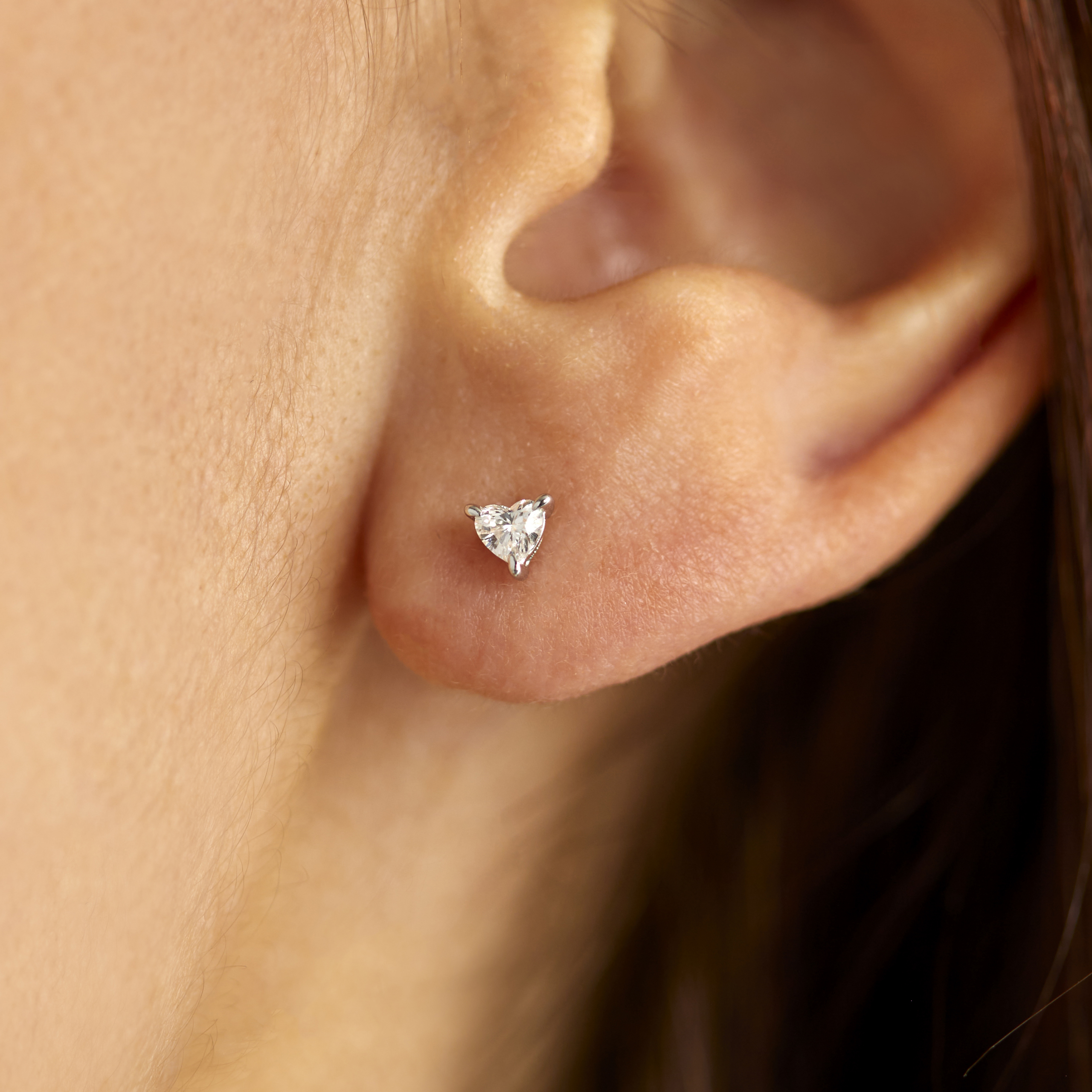 Clear Carats eksklusive solitaire hjerte øreringe i 14 kt. rødguld og 2×1 stk. hjertesleben diamant og kun 3 fatninger der passer med hjertet.