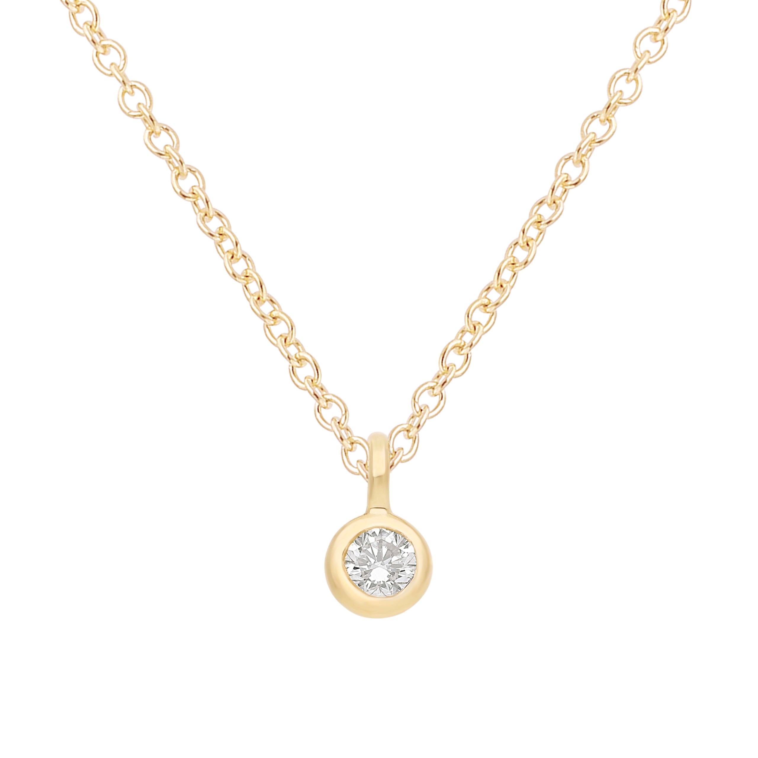 Varenr: 23393P – Solitaire vedhæng small dots i massiv guld og 1 stk. 0.10 ct brillantslebne labgrown diamant i bezel fatning inkl kæde 925 forgyldt sølv. 42 cm.