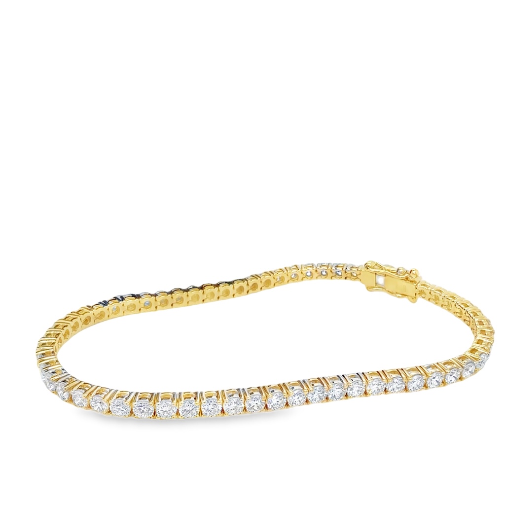 Tennisarmbånd i 14 kt. guld med de smukkeste, funklende brillantslebne diamanter fattet hele vejen rundt. Vores klassiske tennisarmbånd er designet så diamanterne er omfattet af 4 elegante grapper hvilket er den klassiske fatning for tennisarmbånd, samt er der lavet diskrete huller på indersiden og ydersiden ved diamanterne, som dermed giver mulighed for meget mere lysrefleksion til diamanterne end normalt.