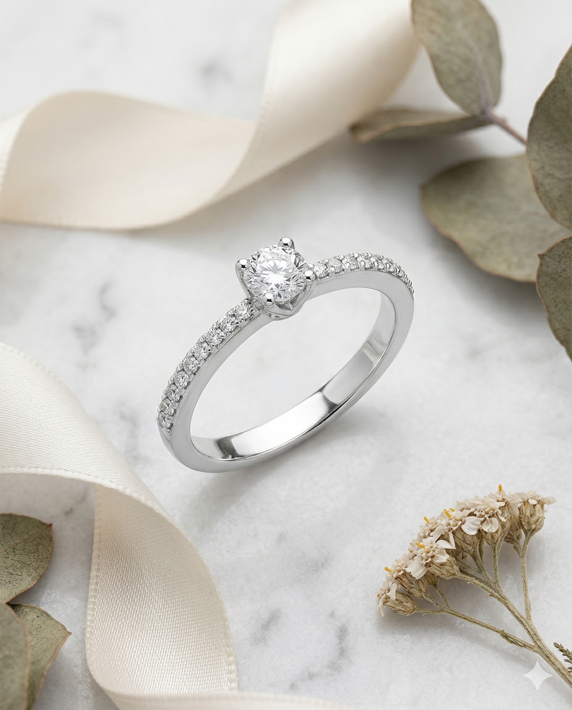 Lad kærligheden skinne med vores “Evig Elegance Diamantring” – det perfekte symbol på evig troskab og lidenskab. Denne udsøgte ring er designet til at være det ultimative udtryk for din kærlighed, hvad enten det er ved frieri eller som en varig markering af ægteskabets løfter.