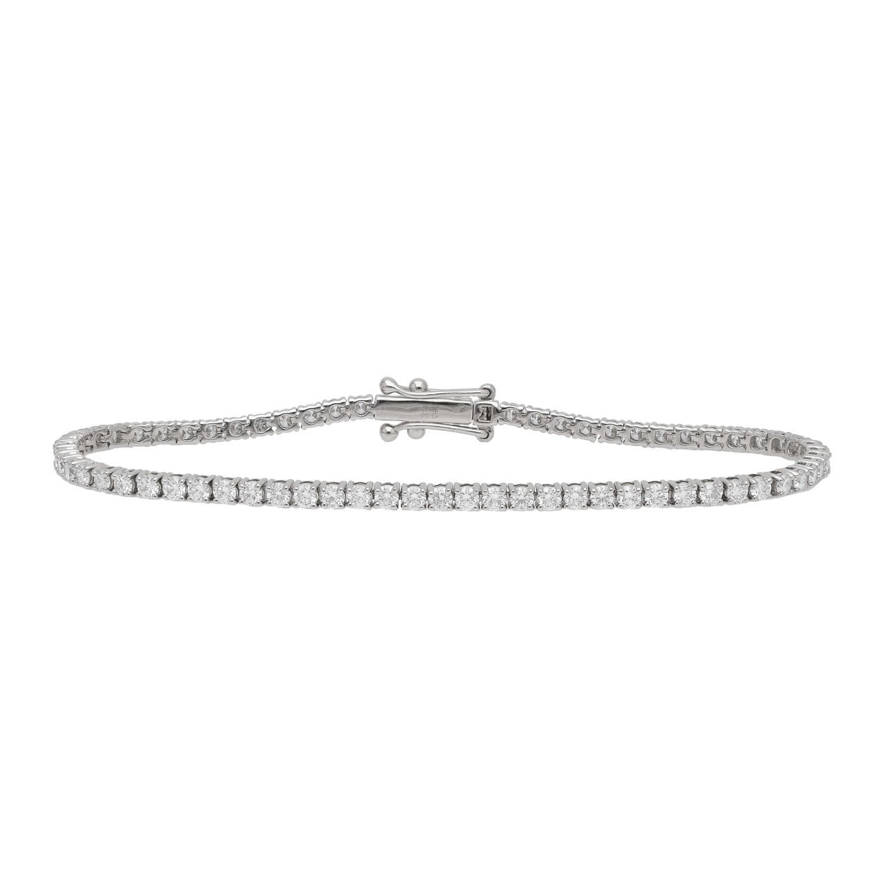 Varenr: 32155-3 – Klassisk tennisarmbånd i 14 kt guld- eller hvidguld med 69 stk. brillantslebne diamanter og total på 3.0 ct. med 4-graps fatning. Monteret med kasselås og 2 sikkerhedshasper.