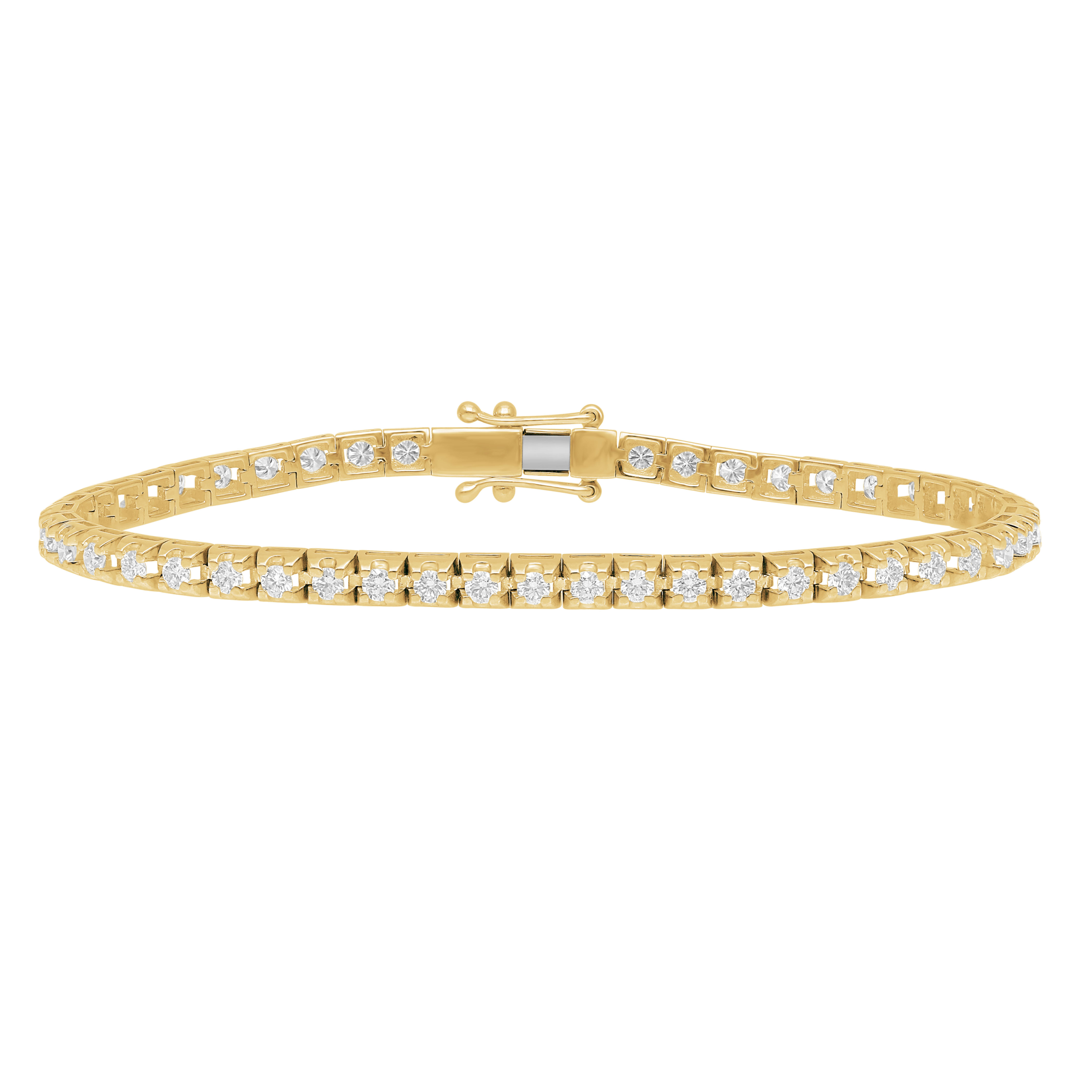 Varenr: 32887-3 – Eksklusiv tennisarmbånd i 14 kt guld eller hvidguld med 3.0 ct lab-grown brillantslebne diamanter i channel fatning. Den har hele 2 stk. sikkerhedshasper samt kasselås.. Det er med klassisk firkantet profil. Her i guld med rhodinering hos diamanten for clean look.